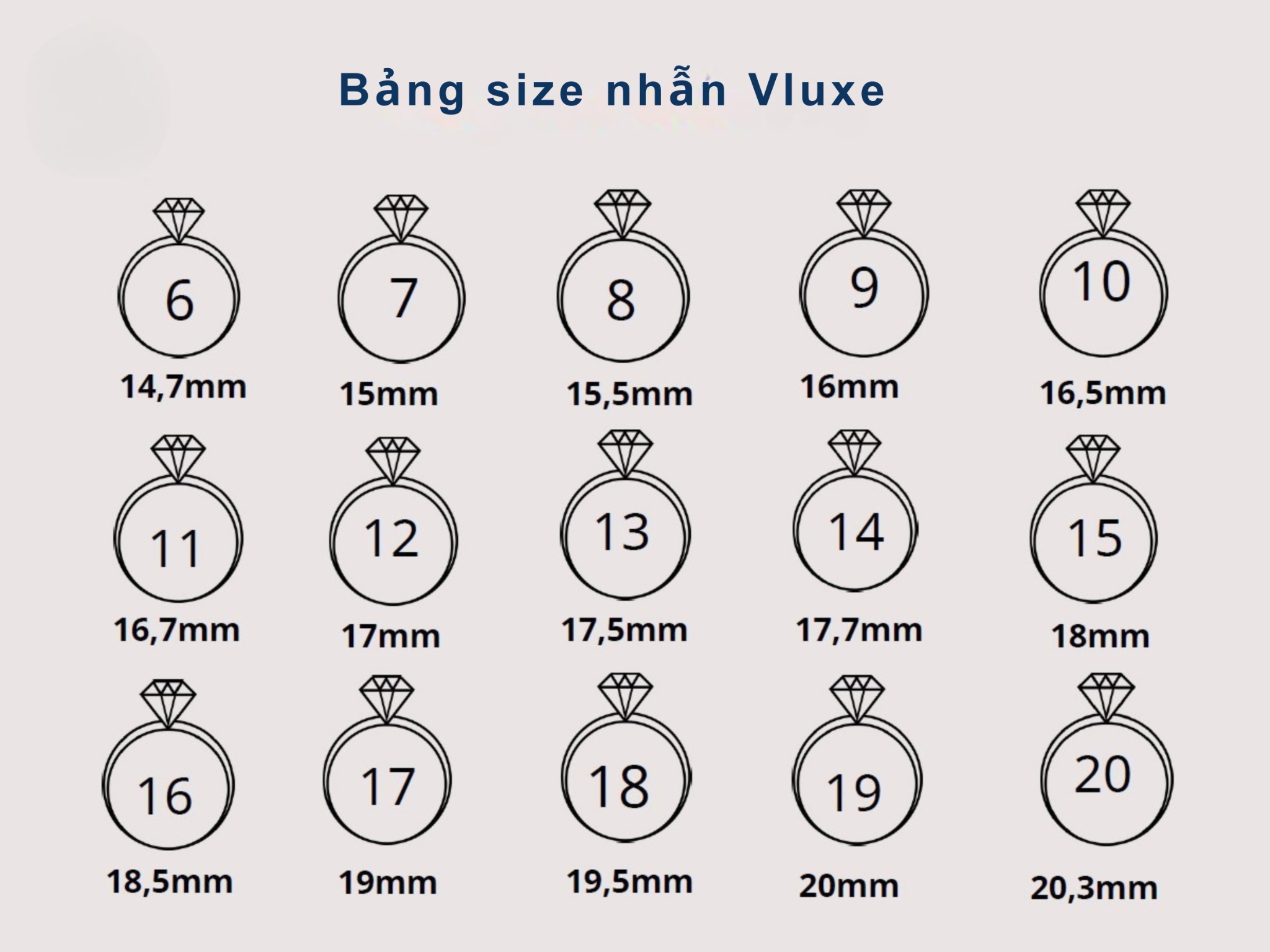 Bảng size nhẫn tiêu chuẩn VLUXE