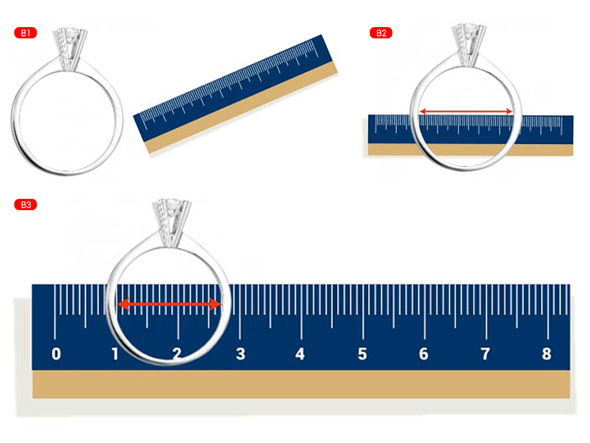 • Đặt nhẫn lên mặt phẳng và dùng thước đo đường kính bên trong.